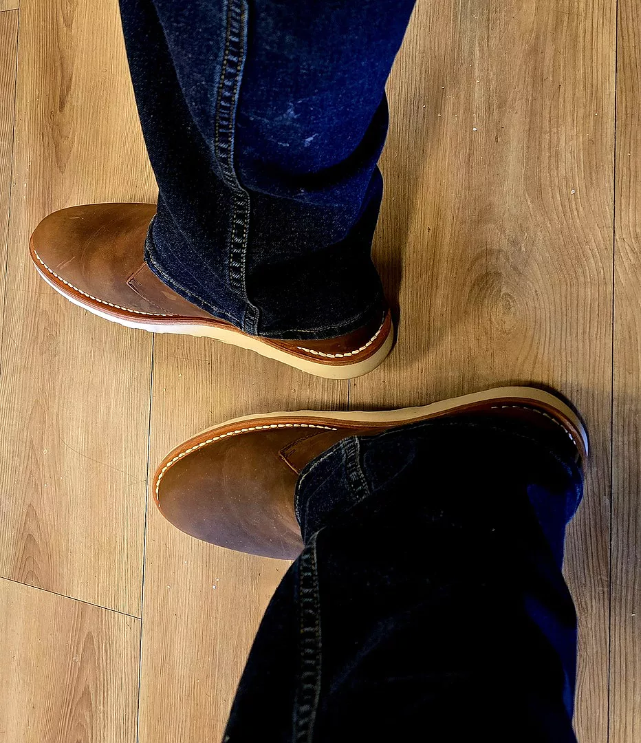 At first I thought I might have to return, but after a couple walks in the house the boots just felt so right and fit perfect! I love the color and craftsmanship of my boots. Love the sole and grip. Not disappointed at all. Will purchase another.